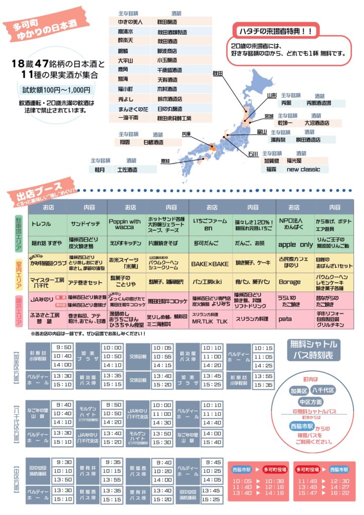 今年は、秋田、山形、宮城、富山、石川、兵庫、高知、全国18蔵から47銘柄の日本酒、そして11種の果実酒が集結。
